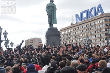 Собственно, митинг оппозиции изначально был озвучен как протест одному из федеральных телеканалов, показавшему в минувший четверг документальный фильм про то, что оппозиция платит гражданам за участие в своих акциях. Впрочем, вскоре «прогуливающиеся» (так митингующих называла полиция) в сквере за спиной у памятника помянули и про другие свои требования — новые выборы и свободу "политзаключенным", которые то ли есть в России, то ли все-таки нет... Народа на несанционированный митинг собралось не так уж и много — корреспондент «КП» в самый «час пик» насчитал приблизительно человек 600. Это вместе с многочисленными журналистами, находящихся среди митингующих.