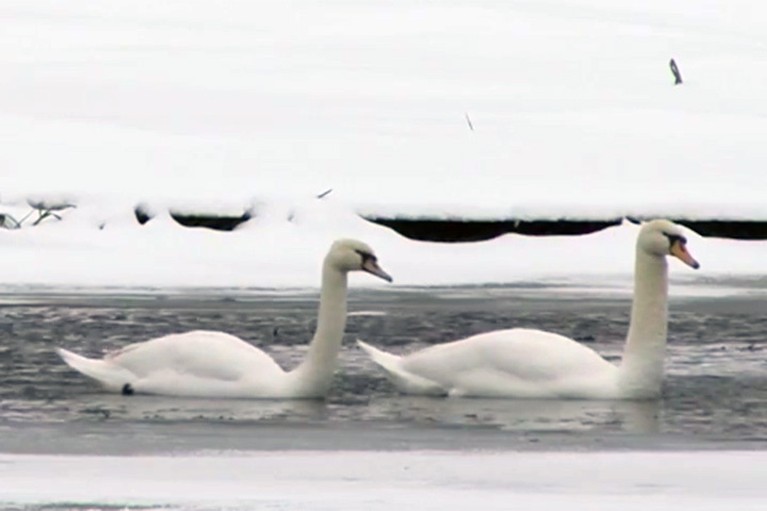 Жители подмосковной Рузы уже привыкли, что в теплое время года на пересекающей город реке (она тоже называется Руза) много водоплавающей птицы. Обычно здесь с весны до холодов живут утки-кряквы. Иногда прилетают птицы и покрупней. В этом году, например, здесь все лето видели парочку белоснежных лебедей. Когда в морозы реку начало прихватывать льдом, утки несколькими стаями улетели, а длинношеие красавцы почему-то остались.